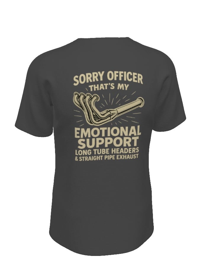 “SORRY OFFICER, THAT’S MY EMOTIONAL SUPPORT LONG TUBE HEADERS & STRAIGHT PIPE EXHAUST.”